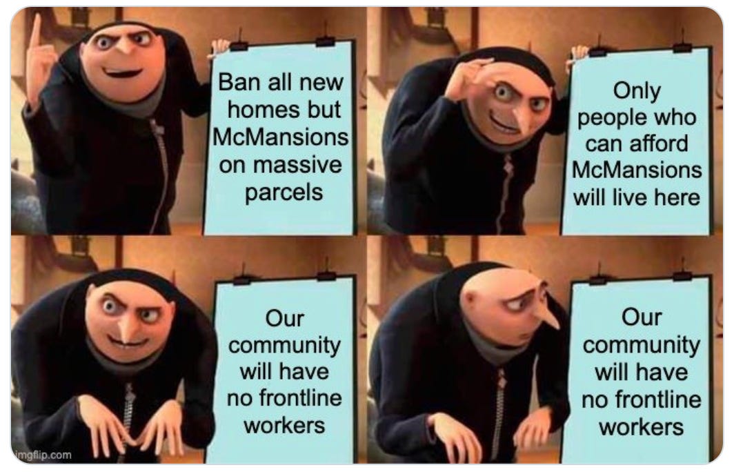 Yeah. We want the economic engine. We want the services. But heaven forbid we allow the people providing them to actually live nearby.